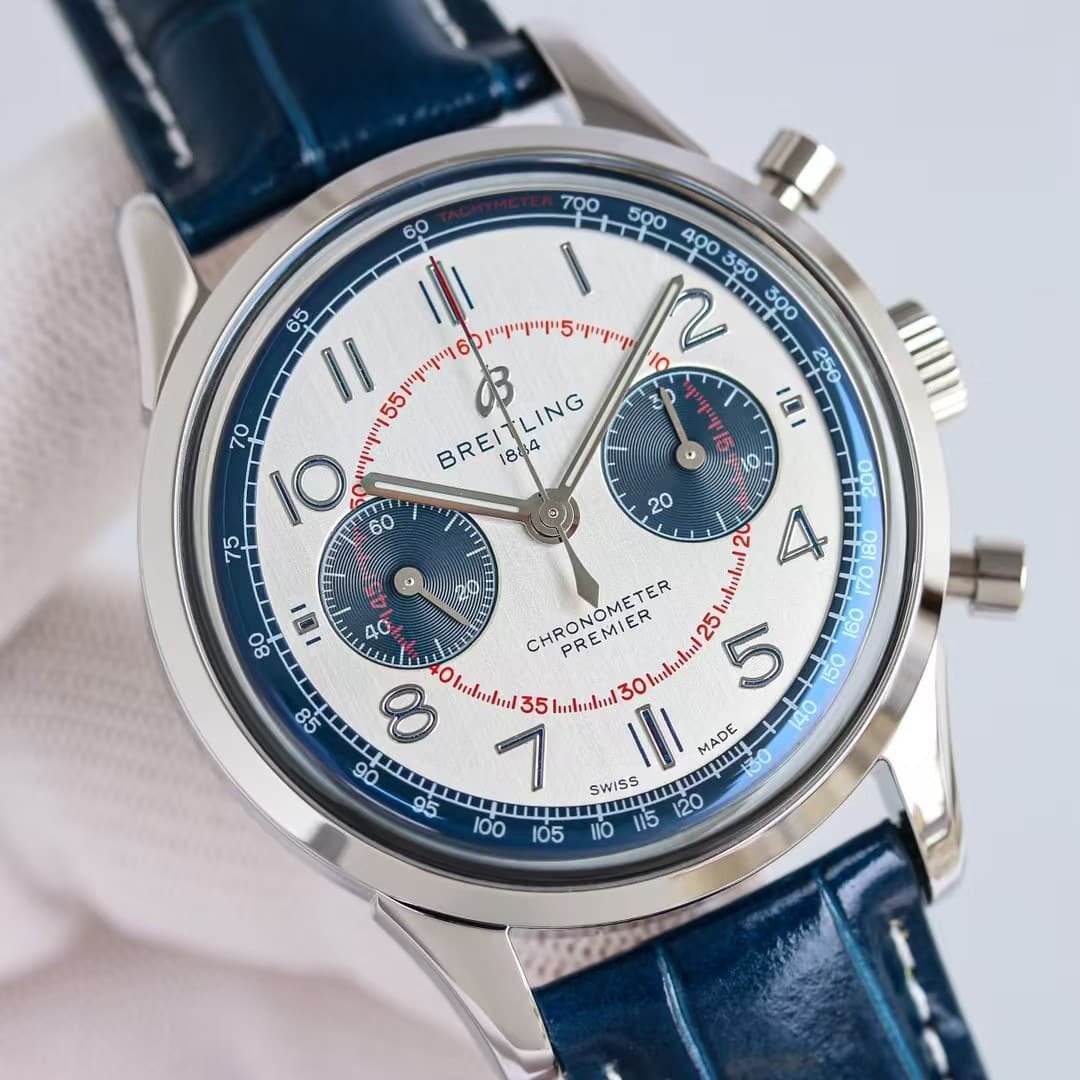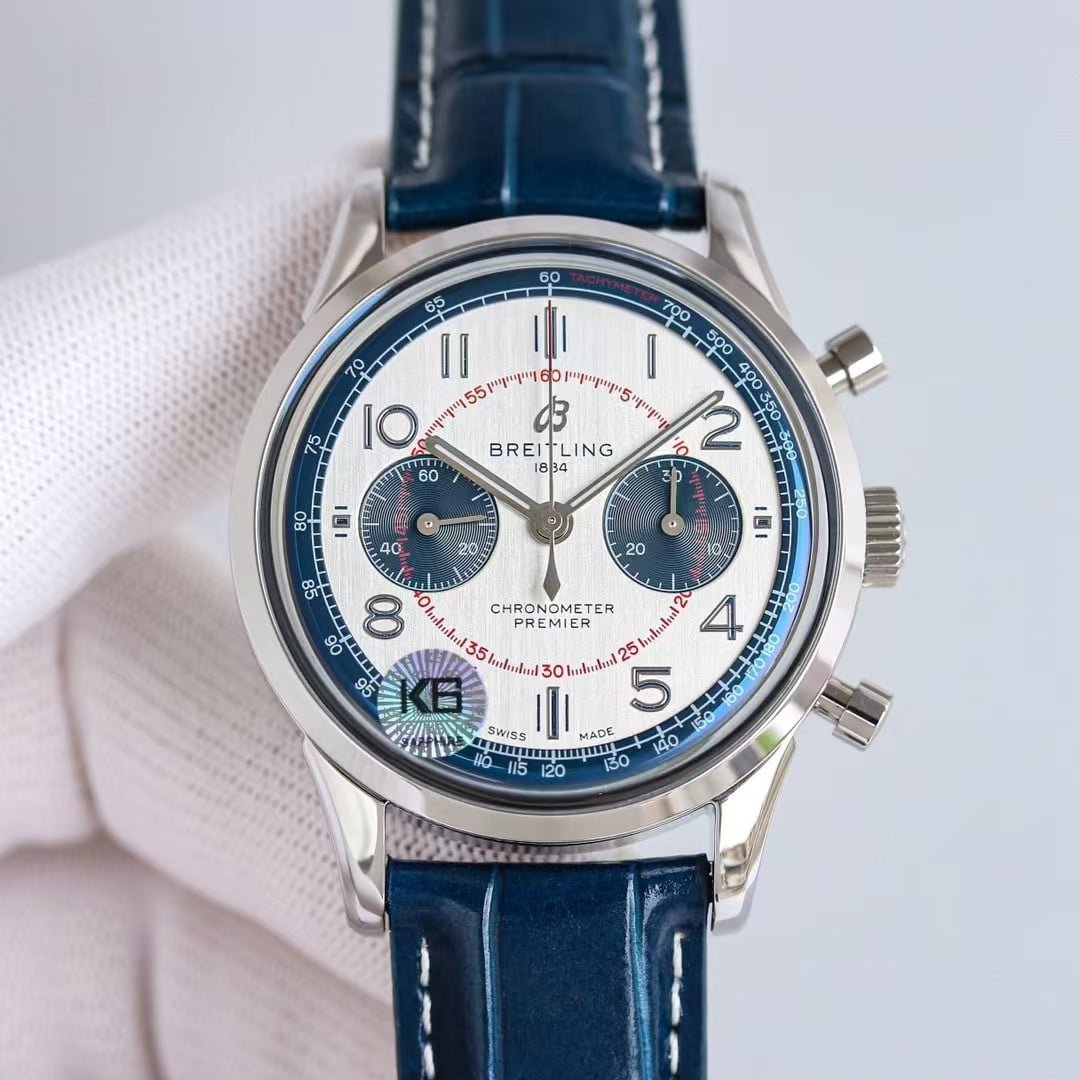 Super Clone Breitling Premier Chronograph 42 Blue-Silver Bi-Color Dial – KB Factory