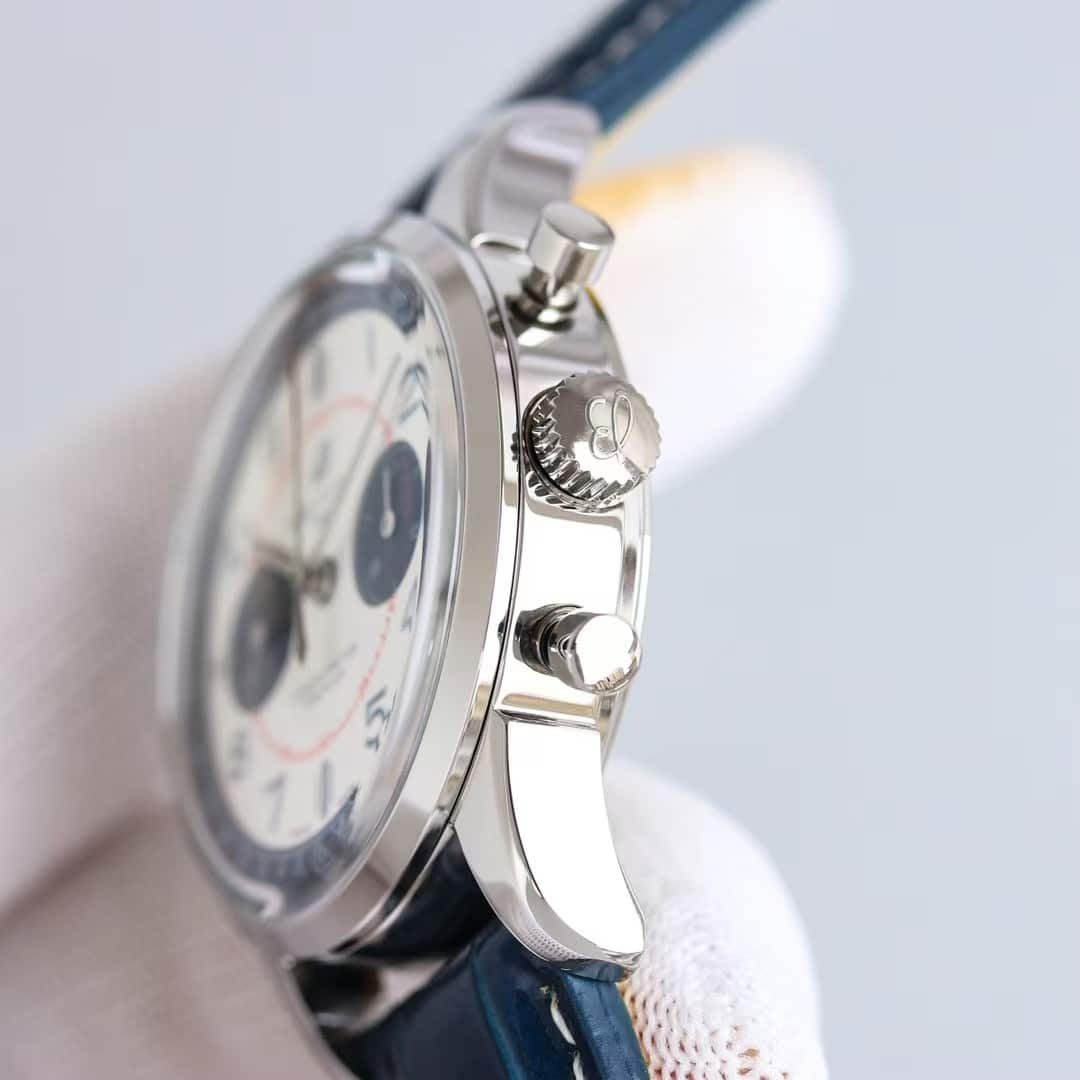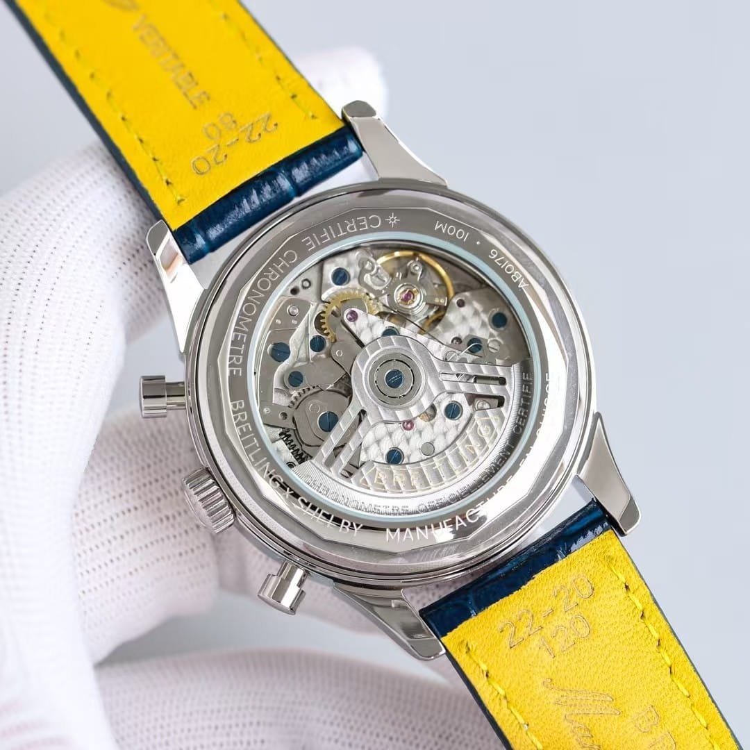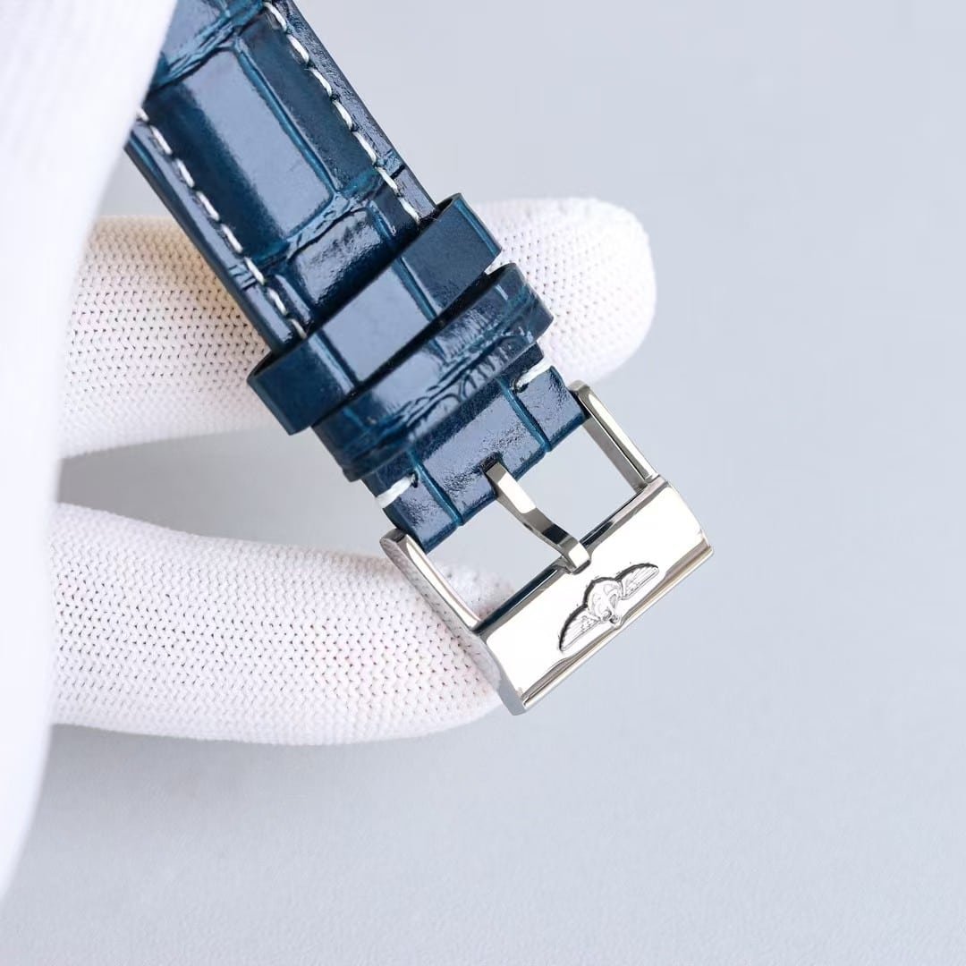 The Premier’s 42mm steel case has always been a comfortable shape, and this replica watch version from KB maintains the same proportions. The lugs drop sharply enough to follow the wrist, and the polished surfaces bring a clean contrast to the blue strap and dial accents.