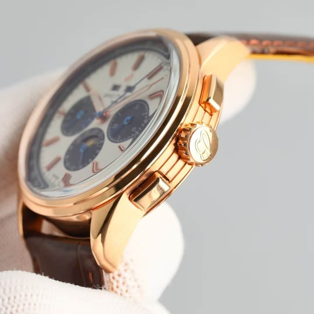 Some watches feel like they were designed for speed; others feel designed for pace. This cream-dial Premier Moonphase sits firmly in the second category. Instead of the instant punch you get from a racing chronograph, this one moves with a slower rhythm — day, date, month, and moon — all playing out across a warm, balanced dial. In rose gold, the watch gains a softness you can’t fake: a gentle shine, not a loud glare. For a china super clone with multiple complications, the BLS factory brings surprising discipline to the way the functions behave on the wrist.