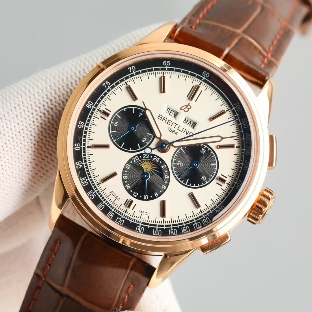Super Clone Breitling Premier Moonphase Calendar – BLS Factory (Rose Gold / Cream Dial)
