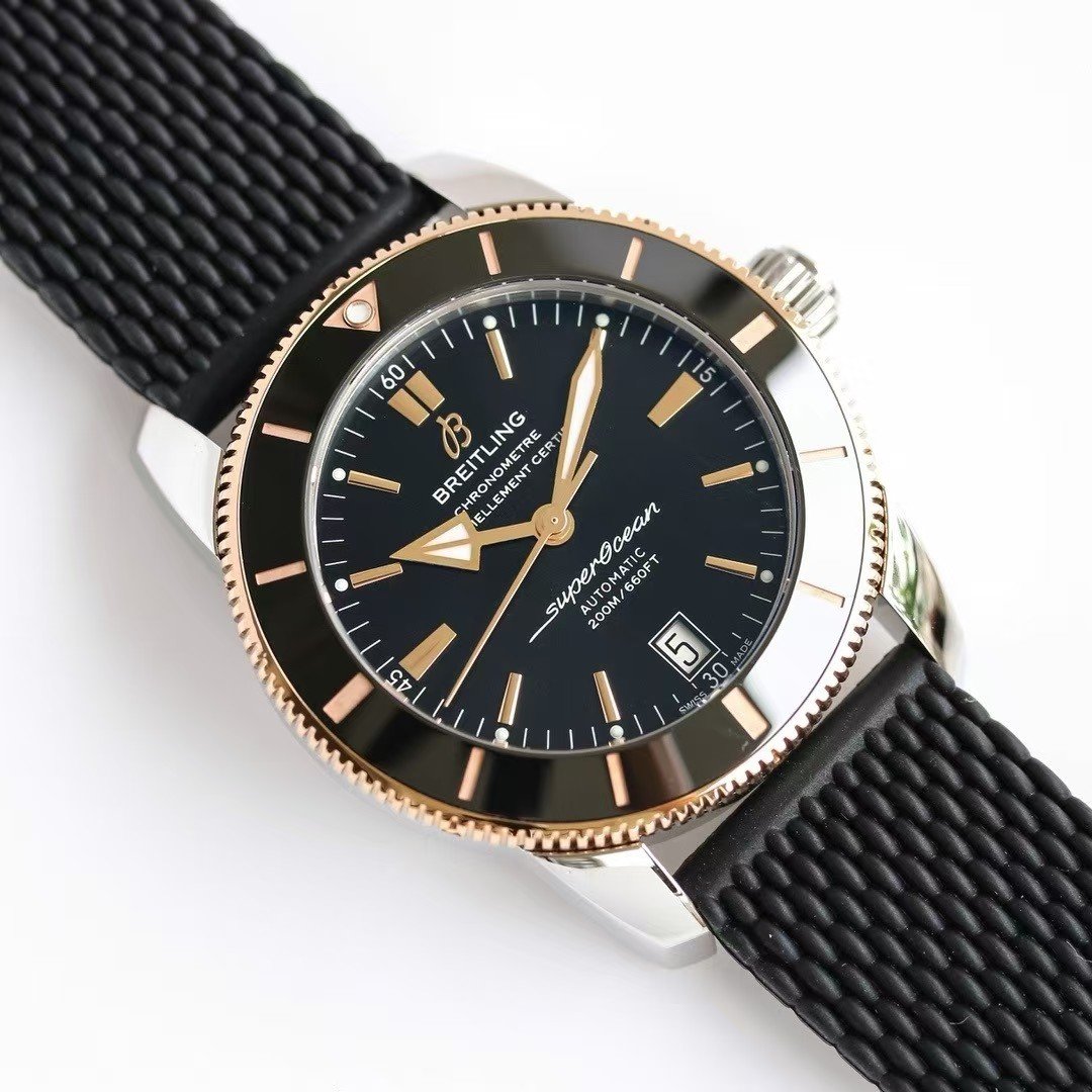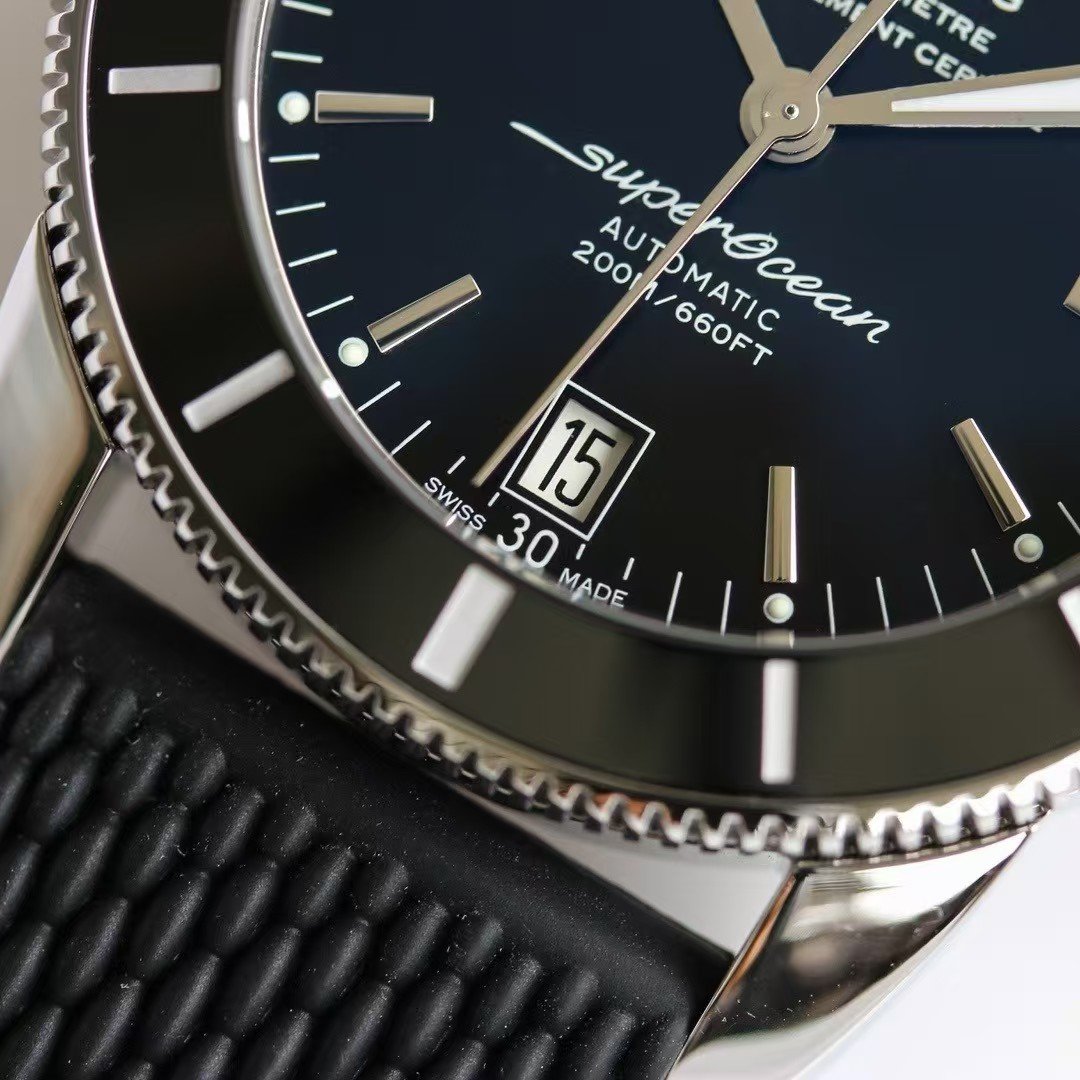 Super Clone Breitling Superocean Heritage II Black Dial Black Bezel Rubber Strap BLS Factory China Replica Edition