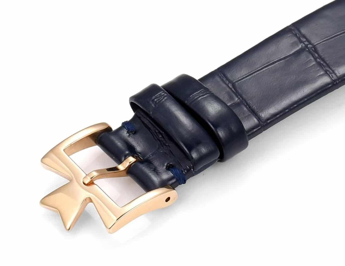 The strap begins stiff, particularly where it meets the lugs, resisting the case’s curvature at first. Over weeks, it softens and begins to drape, allowing the watch head to sit more naturally. The taper exaggerates the dial’s imbalance, making the upper half feel visually heavier. In warmer conditions, the leather remains tolerable, though it never fully disappears against the wrist. Its behavior mirrors the watch as a whole: restrained, compliant over time, but never fully yielding.
