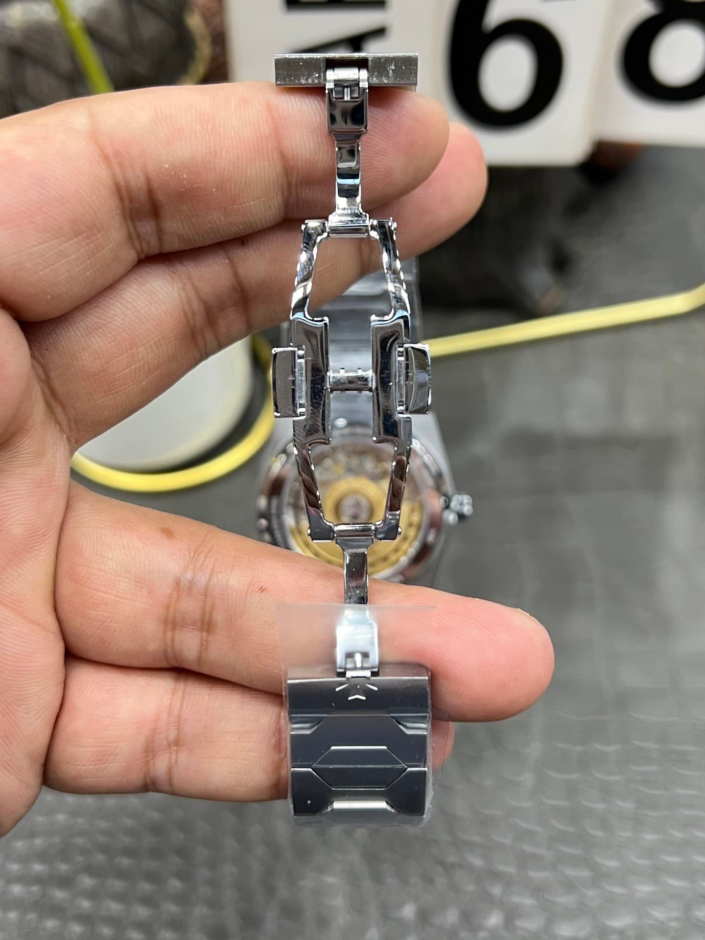 Later that evening, around 6:55 PM, seated at a desk under warm indoor light, the watch felt quieter. The bracelet reflected the room subtly, while the dial stayed reserved, almost withdrawn. The time was present, but it did not insist on being read.
