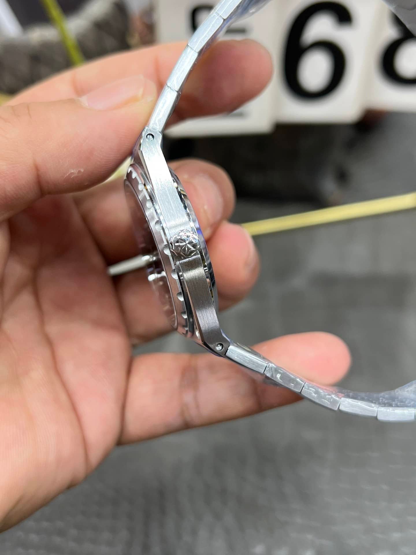 The case architecture defines how the watch negotiates wear. The toothed bezel catches light in short, controlled flashes, while the mid-case remains brushed and quiet. There is little curvature to automatically accommodate the wrist. Instead, the watch expects adaptation. Lug articulation does not exist in the traditional sense, so wrist movement causes the entire watch to shift as one. Compared with modern Vacheron Constantin lines, this case does not disappear. It maintains position rather than yielding. Subtle traces of guangzhou watchmaking appear in the edge finishing, where transitions are slightly softened to avoid sharpness without losing definition.