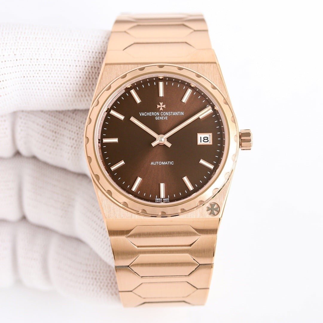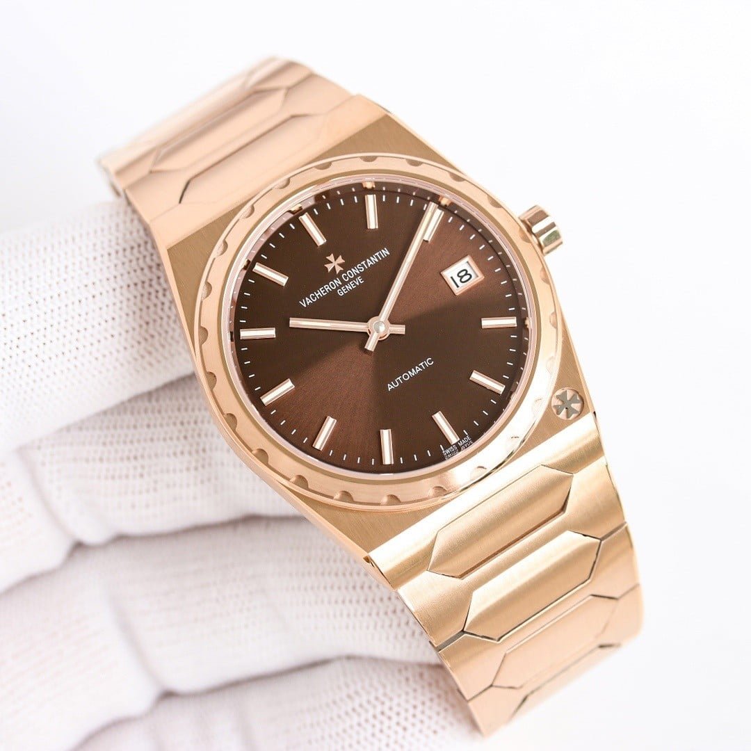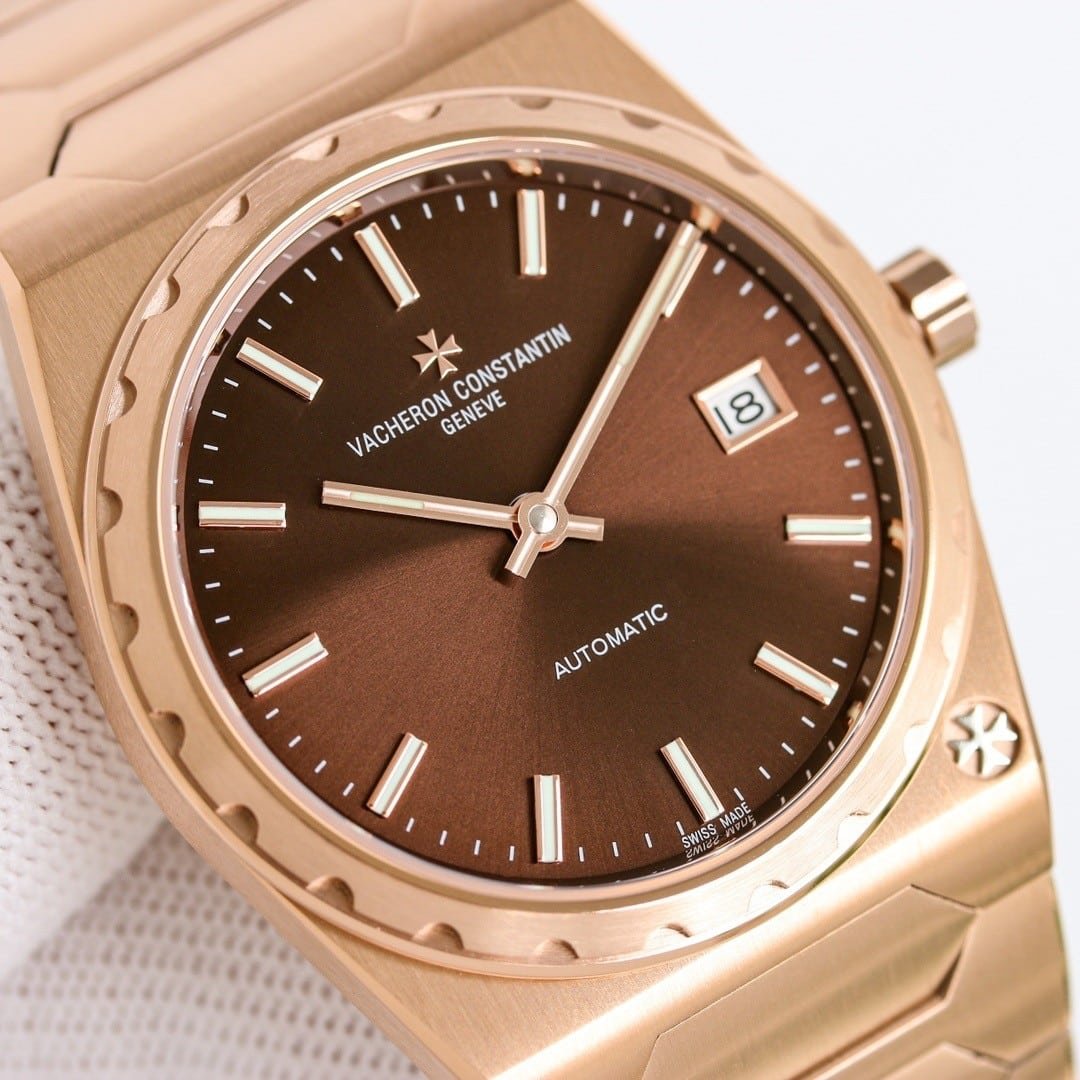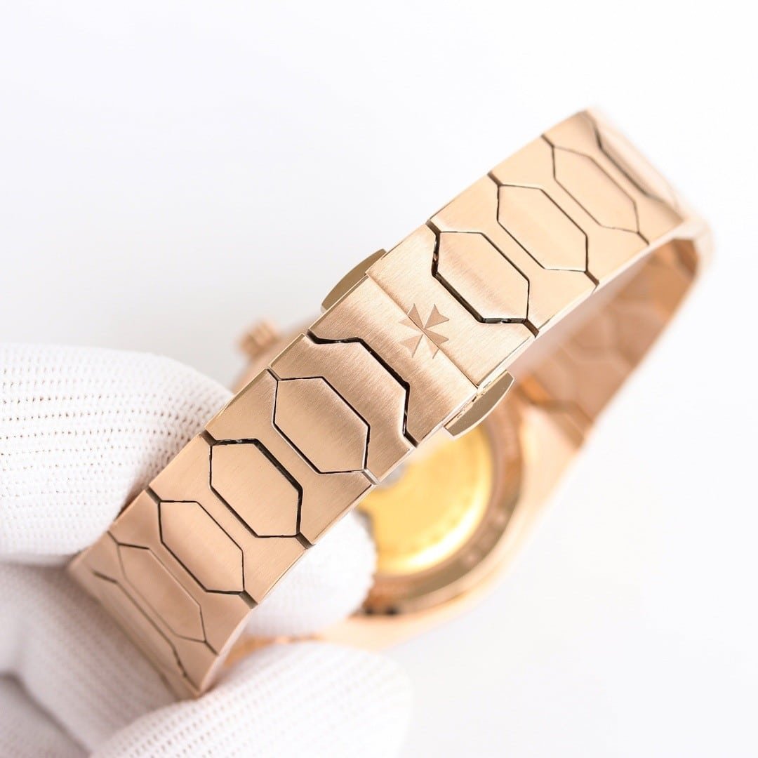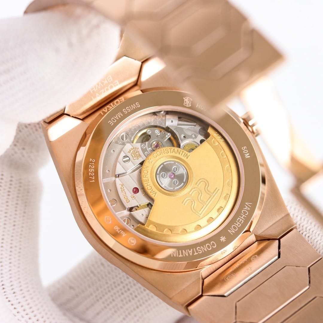 The case architecture defines how the watch negotiates the wrist. The toothed bezel catches light in short, controlled flashes, while the mid-case remains brushed and quiet. There is little curvature to accommodate the wrist automatically. Instead, the watch expects the wrist to adapt. Lug articulation does not exist in the traditional sense, so movement causes the entire watch to shift as one. Compared to modern Vacheron Constantin lines, this case does not disappear. It maintains position rather than yielding. Subtle traces of guangzhou watchmaking appear in the edge finishing, where transitions are slightly softened to maintain comfort without losing definition.