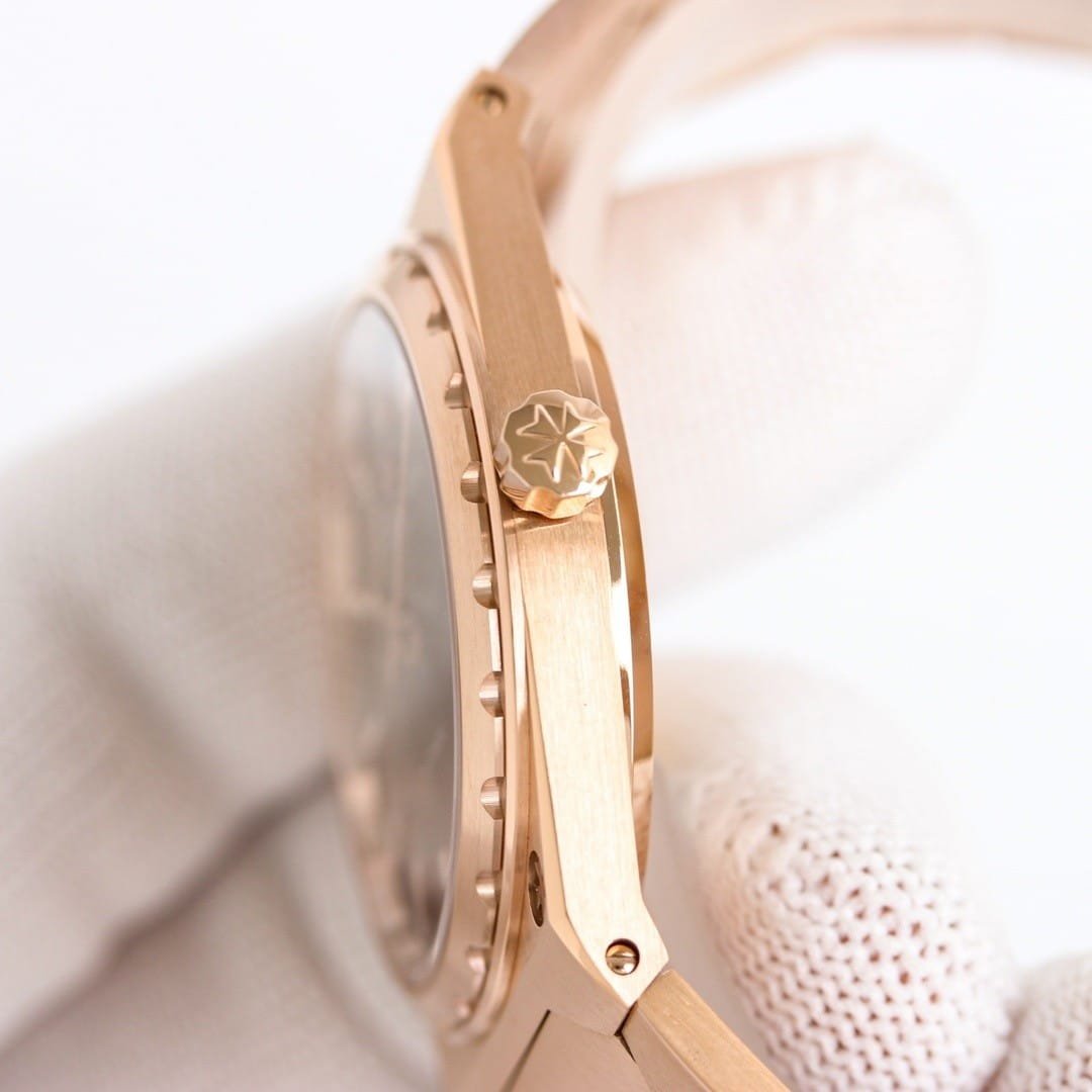 The integrated bracelet defines long-term wear more than the case itself. Its width remains consistent from case to clasp, reinforcing the watch’s architectural stance. Initially rigid, it loosens slightly with time but never drapes like leather. Seasonal comfort shifts noticeably. In warmer conditions, the rose gold feels warm and grounding against the skin. In cooler air, it sharpens awareness of contact. This behavior mirrors the watch’s overall restraint, never softening itself fully for comfort.