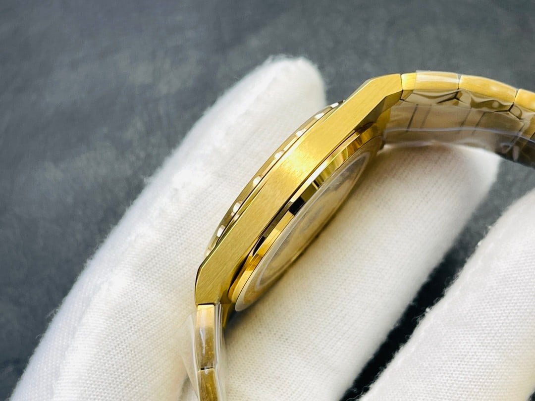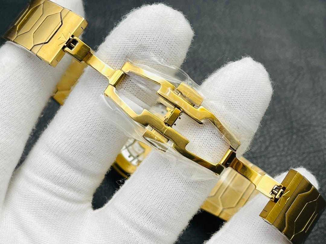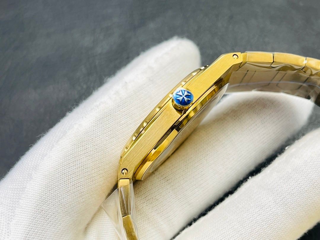 The watch in front of me aligns closely with the Historiques 222 logic, likely the modern interpretation of that reference in yellow gold, measuring around 37mm with an integrated metal bracelet. The dial is gold-toned, flat rather than layered, with applied baton markers and a discreet date window placed slightly above the horizontal axis. The case is thin, visually continuous with the bracelet, and the crown sits modestly at three, while the Maltese cross emblem interrupts the case flank closer to five. I spent the first full day wearing it without adjusting the bracelet, letting its weight and geometry decide how it wanted to sit. This china super clone Historiques approaches daily wear through deliberate proportion rather than modern efficiency…