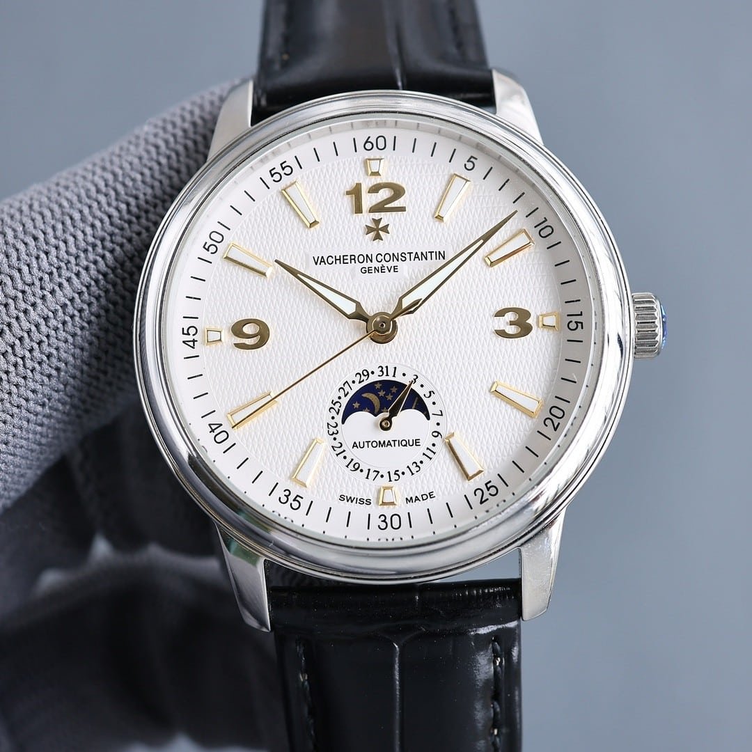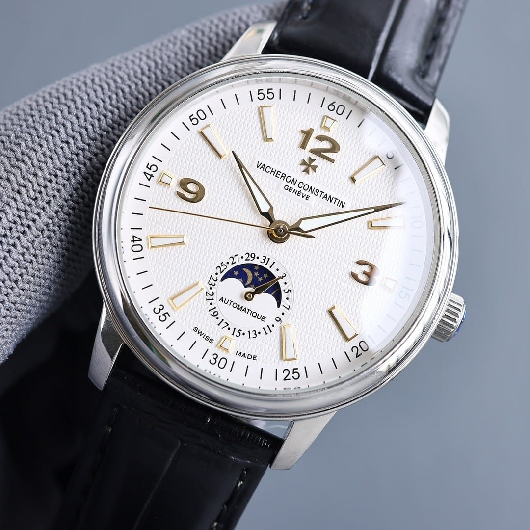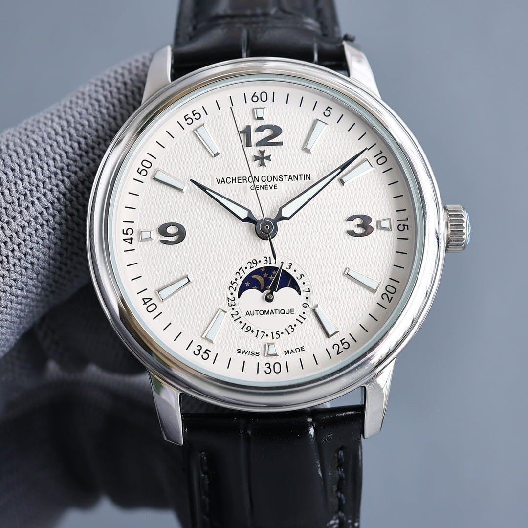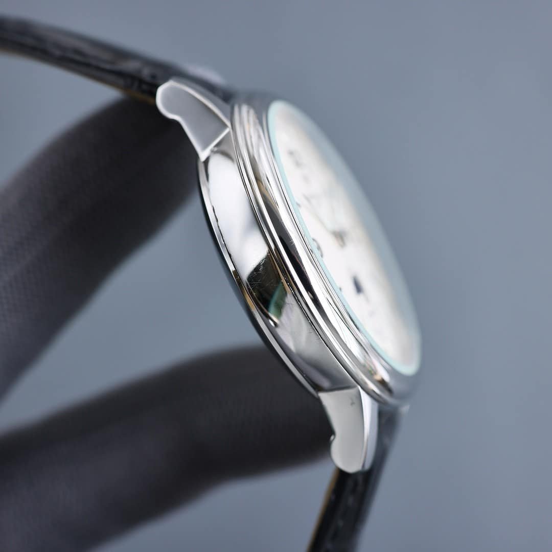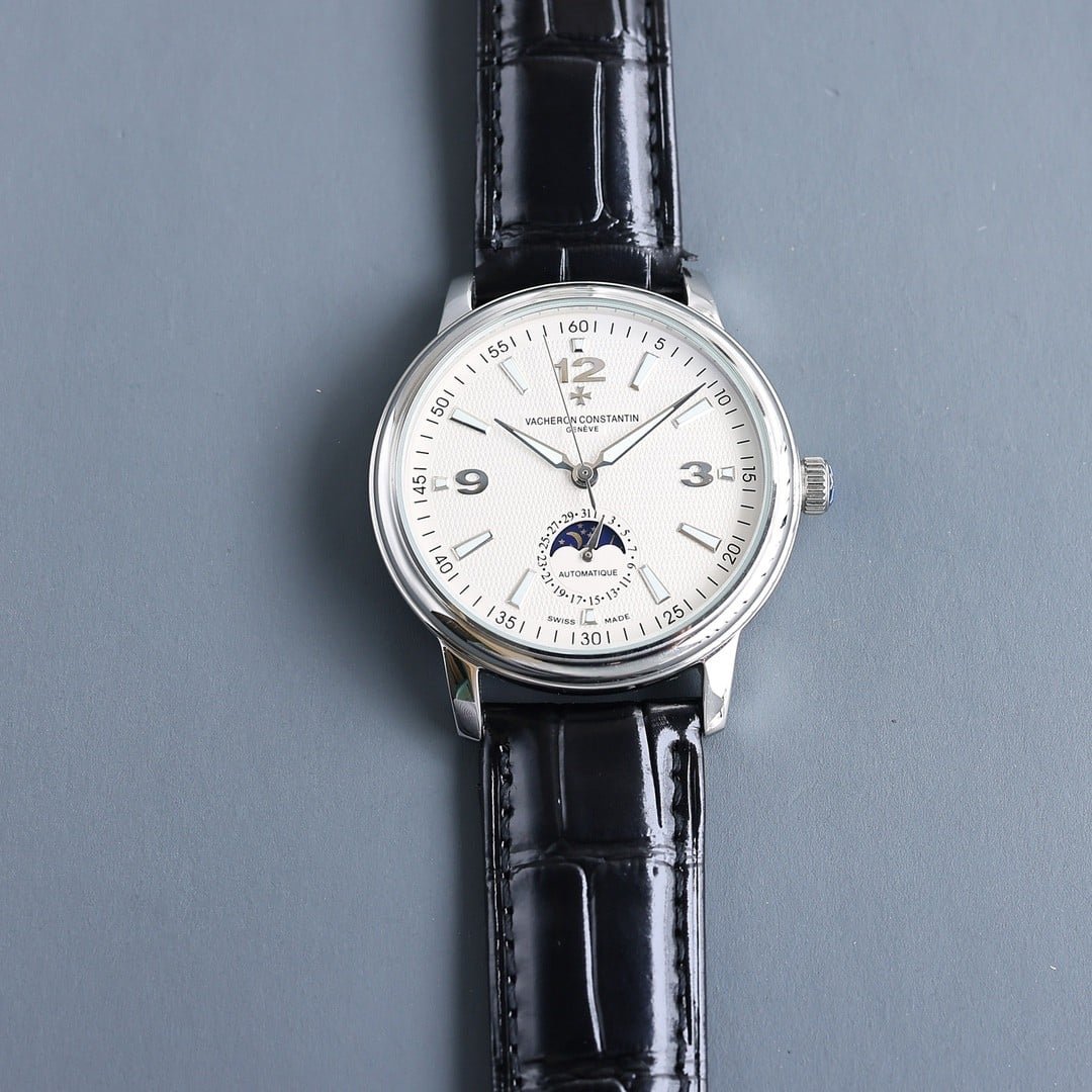 I approach this watch as a Historiques triple calendar with moonphase logic, closely aligned with the 47101/000R-9306 design language, though rendered here in steel rather than gold. The case measures roughly 40mm, the dial is off-white with a textured surface, and the layout is vertically balanced but visually busy. The strap is black leather, conventionally proportioned, immediately soft against the wrist. I wore it through a full working day without adjusting anything beyond the initial setting, letting the dial complexity and case proportions dictate the pace. This china super clone Historiques approaches daily wear through deliberate proportion rather than modern efficiency…