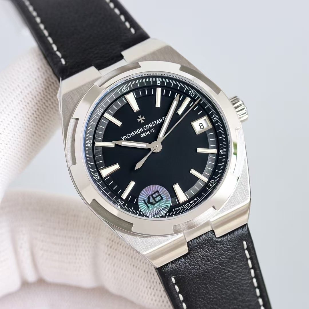 Super Clone Vacheron Constantin Overseas 41mm Black Dial Leather Strap KB Factory