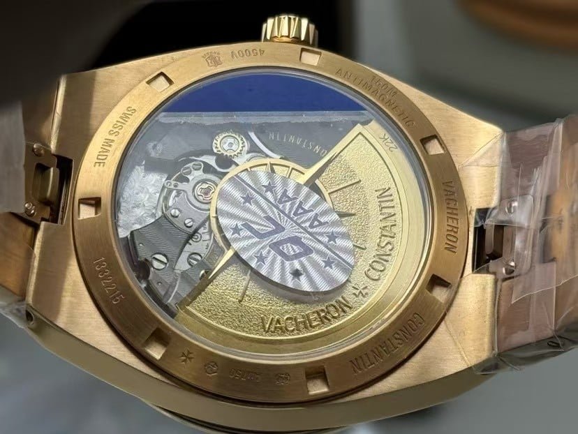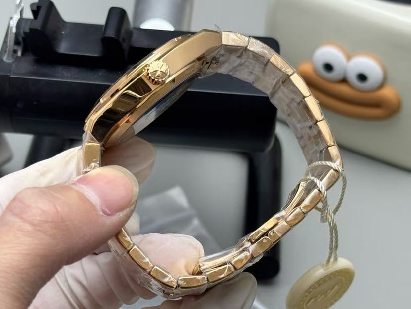 This Overseas replica carries natural experiential differences. The crown texture is slightly firmer. The link articulation begins more structured. The rose-gold tone warms differently than solid precious metal. The dial absorbs more LED light, and the movement sound signature is distinct from the genuine reference.