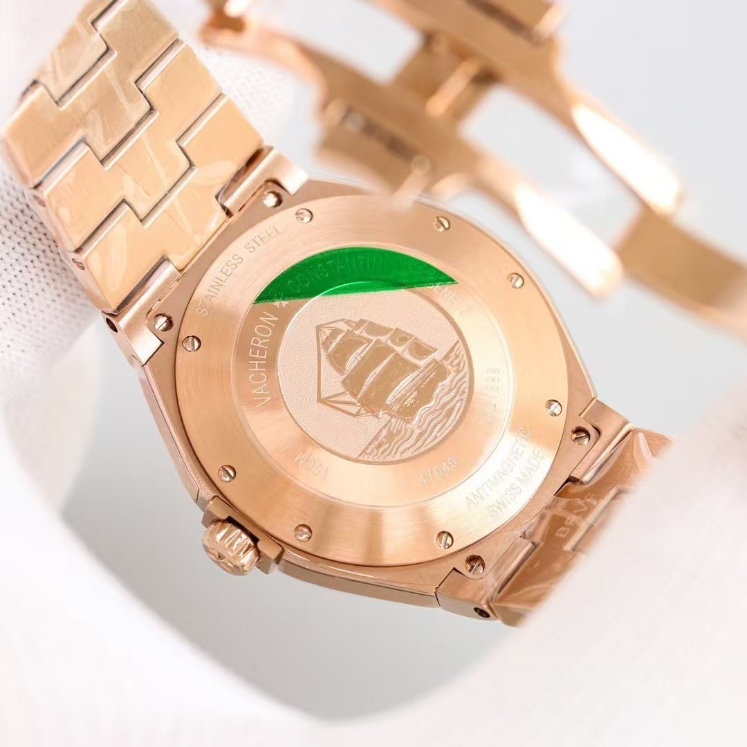 Trade-offs remain: the rose-gold tone reflects slightly smoother than real 18k gold, and the brushing shows a bit less micro-grain under macro inspection. But in daily use, the watch behaves convincingly within the Overseas identity.