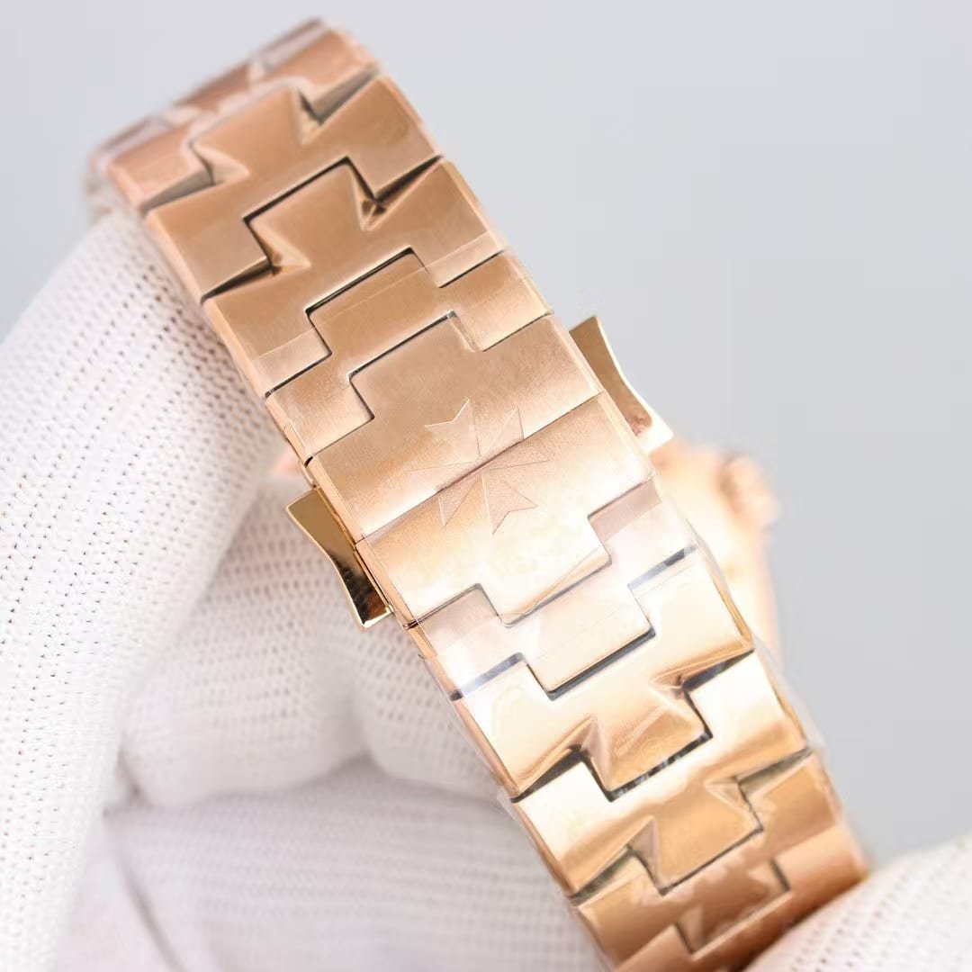 The rose-gold tone is softer than genuine 18k. The dial print carries slightly less micro-contrast. The brushing depth on the case is smoother. The movement architecture differs from the in-house 5100 caliber, but real-world behavior—hand stability, winding feel, and running consistency—remains strong.