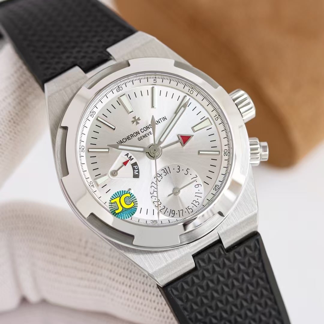 Super Clone Vacheron Constantin Overseas Dual Time 41mm Silver Dial Rubber Strap JC Factory