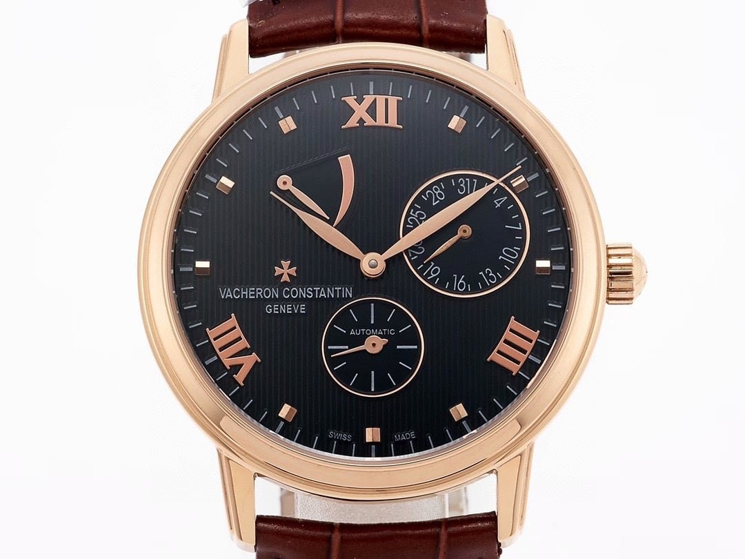Super Clone Vacheron Constantin Traditionnelle 47200/000G-9019 41mm Black Dial Rose Gold Case Leather Strap TW Factory