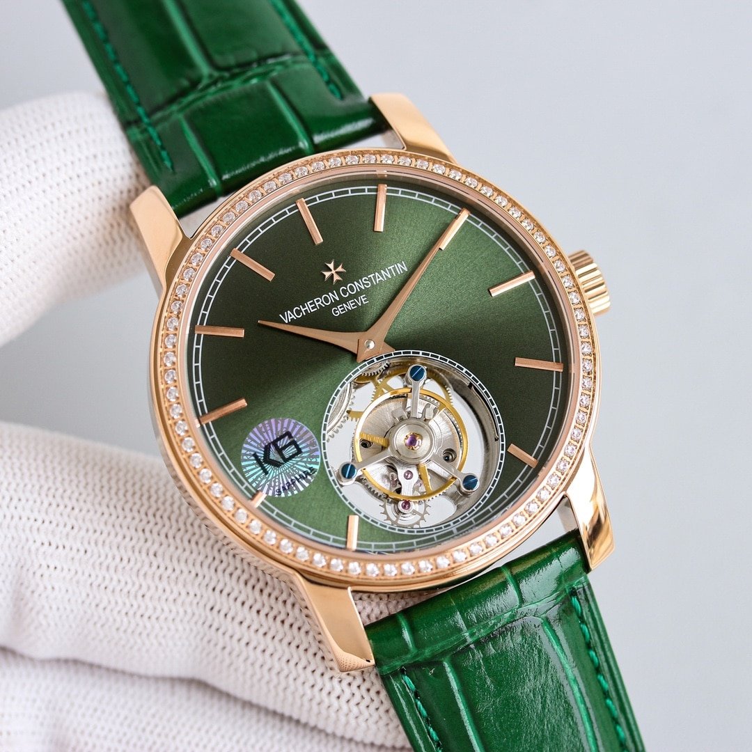 Super Clone Vacheron Constantin Traditionnelle 89000 Series 41mm Green Dial White Gold Case Leather Strap KB Factory