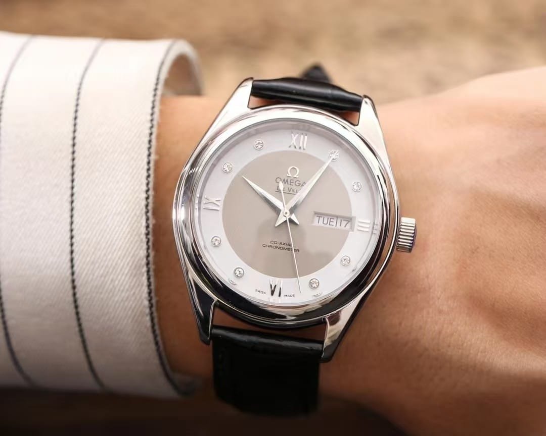 The VS Factory Omega De Ville Co-Axial Chronometer represents a perfect fusion of elegance and mechanical excellence — an understated timepiece that reflects Omega’s philosophy of refined precision. With its clean silver dual-tone dial, diamond hour markers, and Roman numeral accents, this De Ville is designed for those who appreciate quiet sophistication and tangible quality.