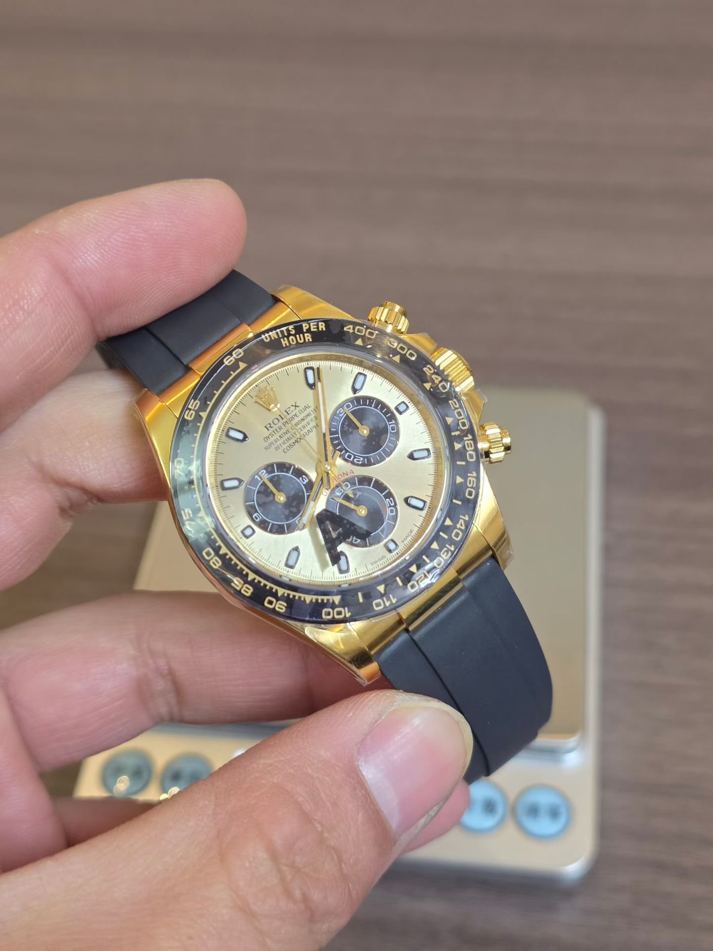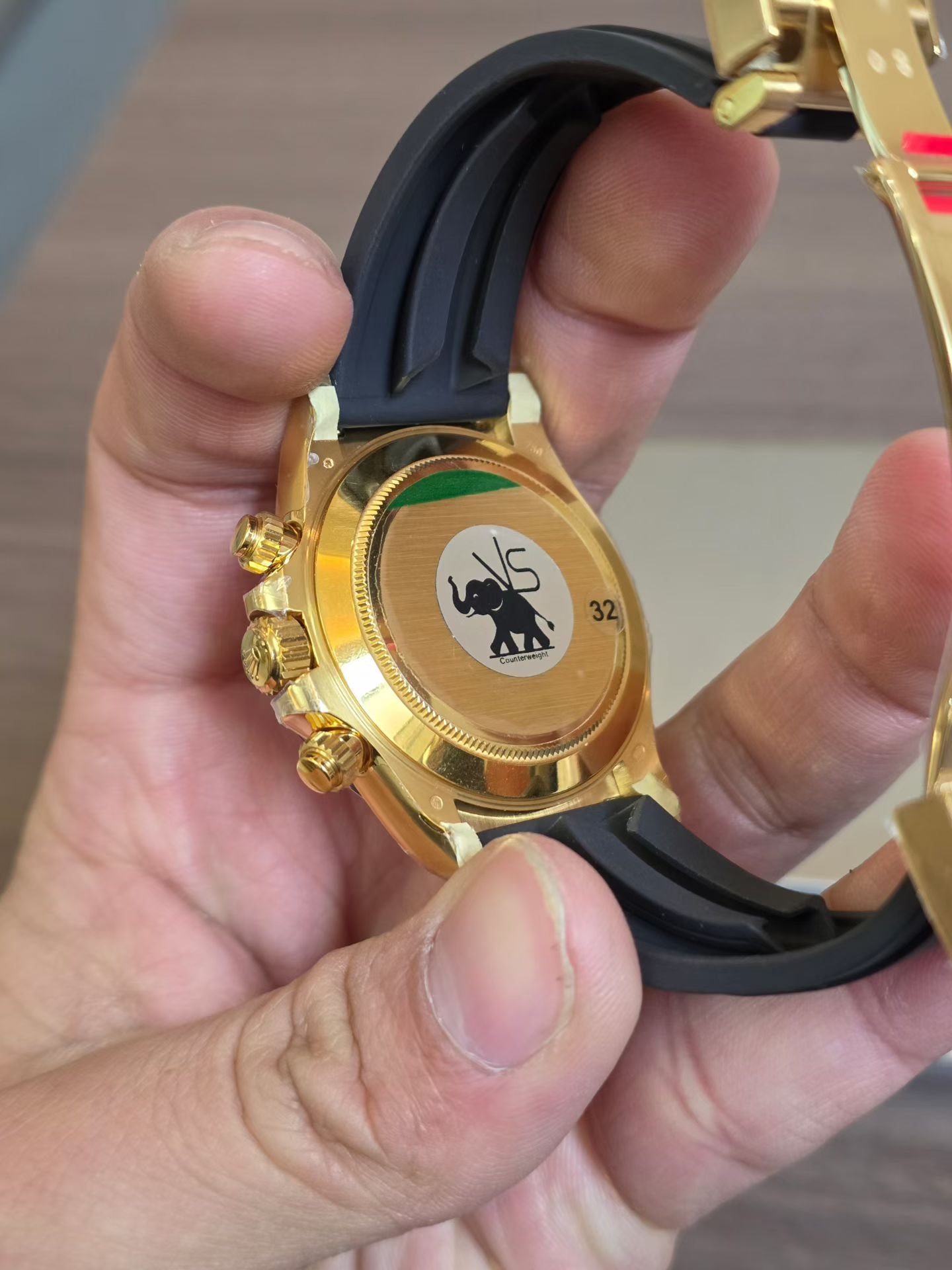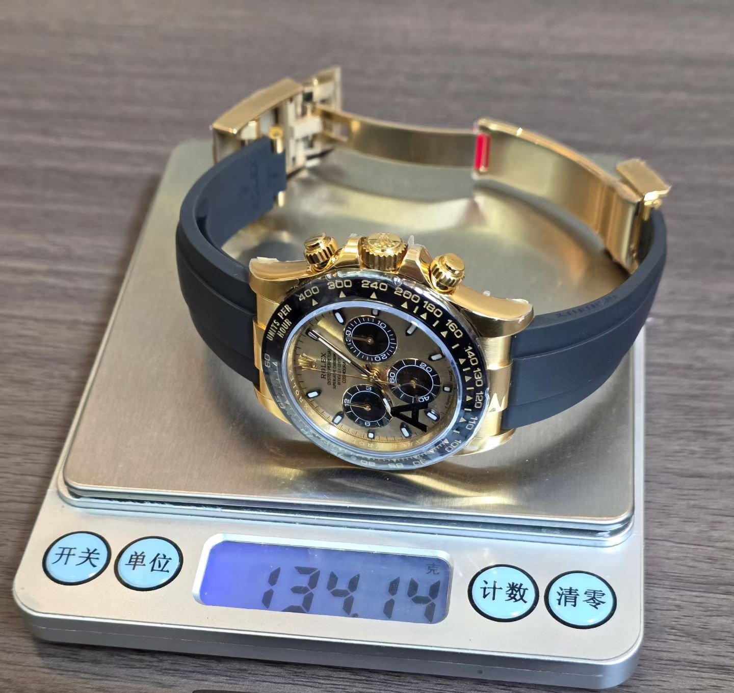 The VS factory v2 version with counterweight, weighing 134 grams, features a custom-molded 4130 movement with a 72-hour power reserve, vacuum gold plating for long-lasting color retention. This is currently one of the top-tier products in China. The movement is a Dandong 4130, and the weight of 134 grams meets the basic requirements.