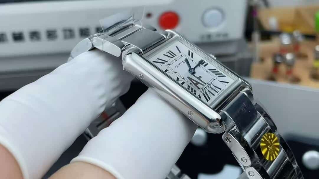 ZF Factory’s version of the Cartier Tank Solo Stainless Steel isn’t a mere imitation — it’s a study of geometry and proportion, crafted through months of trial, error, and precision. In the small Guangzhou workshop where ZF’s watchmakers work, the process begins with a single block of 316L steel. Each case is CNC-cut, then hand-polished in six stages to capture that subtle Cartier glow — not too bright, not too cold, just enough to whisper refinement under light.