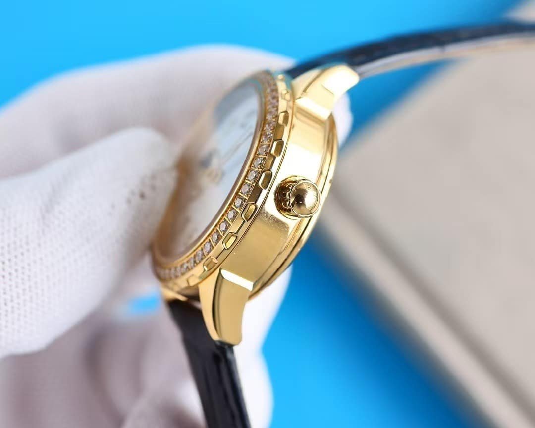 The 37 mm case size sits close to the wrist and fits easily under structured sleeves. The diamond bezel, however, changes how the watch behaves in motion. When adjusting a cuff or reaching forward, it catches light briefly and then recedes. The effect is intermittent rather than constant, which makes it noticeable without becoming overwhelming.